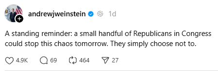 As G. Elliott Morris of Strength in Numbers wrote: Republicans could stop this at any time they wanted to.