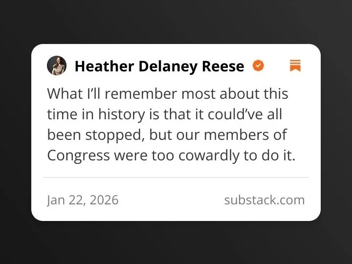 (from Heather Delaney Reese, writing on Jan 22 2026)